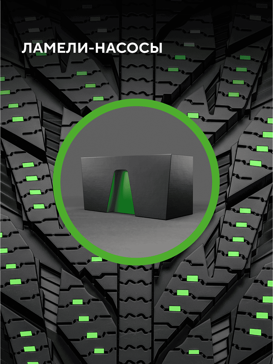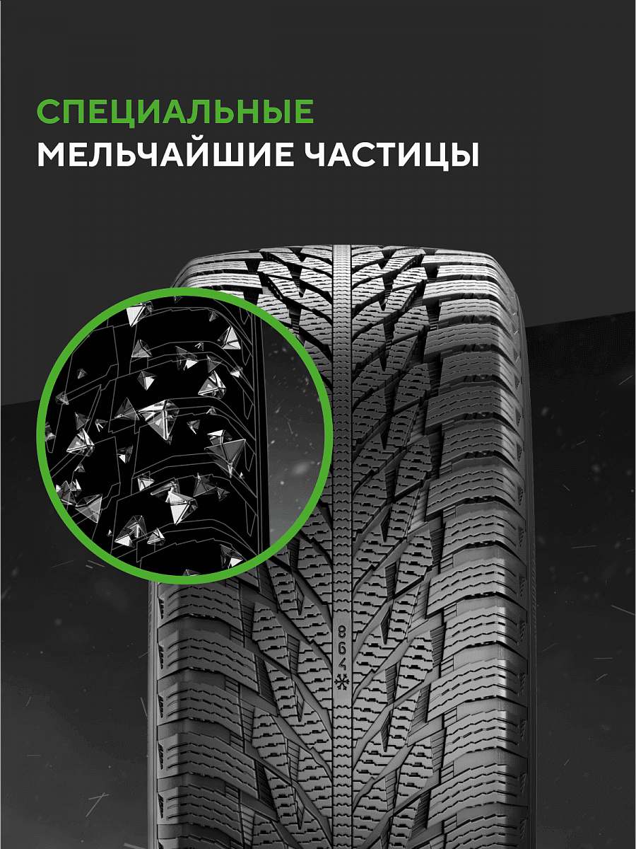 Улучшенное сцепление на скользких дорогах достигается за счет добавления в резиновую смесь мельчайших частиц с острыми гранями, которые проявляются на протекторе по мере износа. Отличная управляемость на льду и снегу.